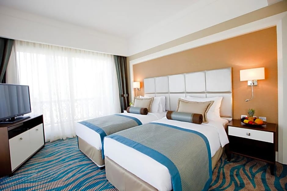 On-site dining spans eight venues with global flavors. Seven Heights serves International fare in a family-friendly setting, while Fish Bone offers casual dining for all ages. Aja Restaurant brings Asian notes, Lalezar offers Ukrainian dishes, Meat Point grills up steakhouse fare, L’Olivo serves Italian classics, and Toast 'N Burger covers American favorites, with a Toast 'N Burger Food Truck for quick bites. A restaurant and a bar are on site, and evenings come alive with live music and performances at no extra charge.
